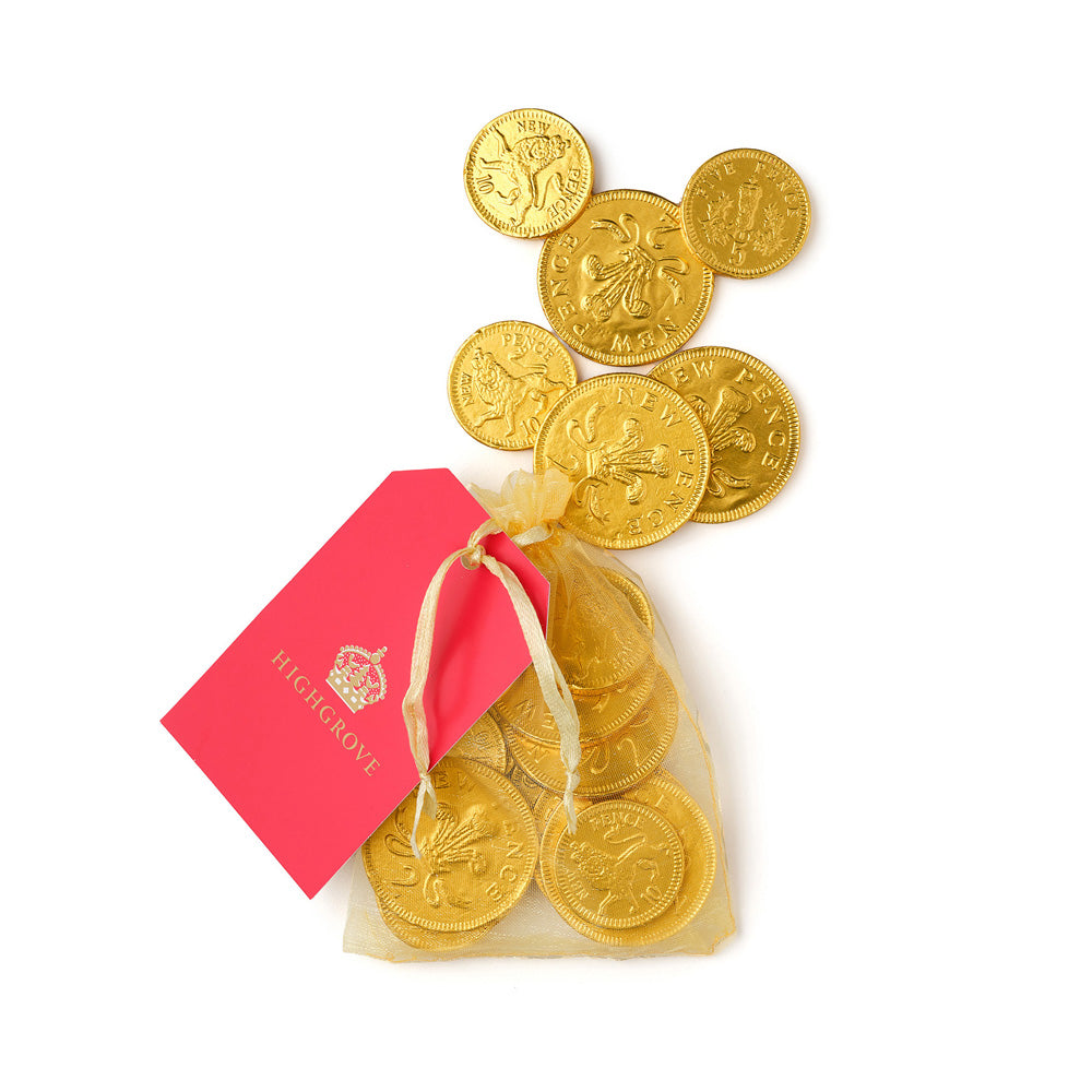 The ultimate stocking filler! This little bag of milk chocolate coins, embossed to look like real British currency, is the perfect Christmas gift, especially for little ones. Wrapped in an organza bag and complete with a Highgrove label, peel back the gold foil casing to discover smooth, creamy milk chocolate.